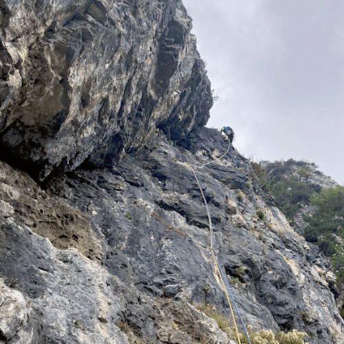 Alcuni passaggi esposti o dove la roccia non appare stabile infondono quell’adrenalina che non deve mai mancare per divertirsi, senza strafare.