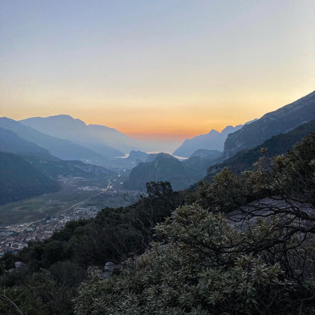 Usciti dalla via, il sole si nasconde all’orizzonte e l’imbrunire si fa strada tra le montagne.