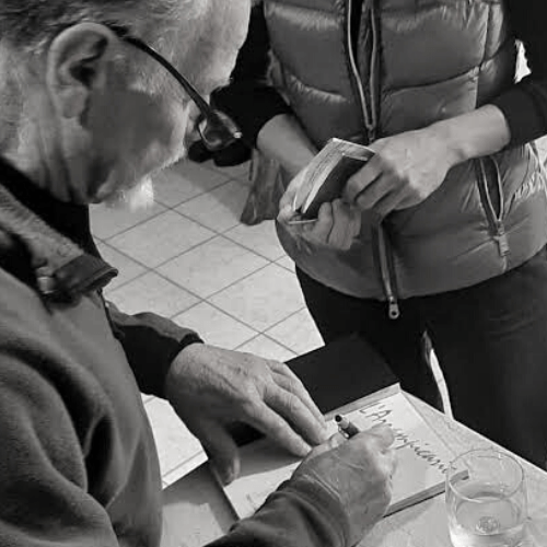 79 anni, barba e baffi portati sempre allo stesso modo (ho potuto sfogliare alcune foto di questo signore da giovane) e una naturale propensione a raccontare la realtà senza peli sulla lingua, attraverso gli occhi di chi ne ha viste e passate, con i piedi a terra o sulle innumerevoli pareti di roccia.