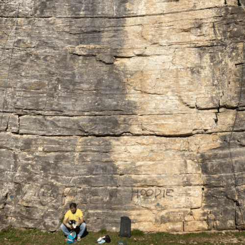 Arrivati, parcheggiamo davanti al settore alto, che mi fa rivivere i bei momenti che ho passato qui quando avevo appena iniziato ad arrampicare e nei tardi pomeriggi estivi o in pausa pranzo avevamo poco tempo da dedicare alla scalata.