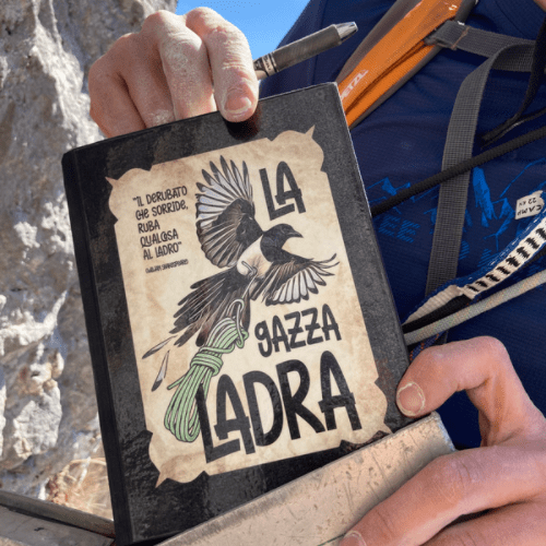 Mario ed Elena chiodarono la via fino alla vetta, sei bei tiri su una lunghezza di 210 metri, ognuno con il suo perché. A questa via fu dato il nome Gazza Ladra.