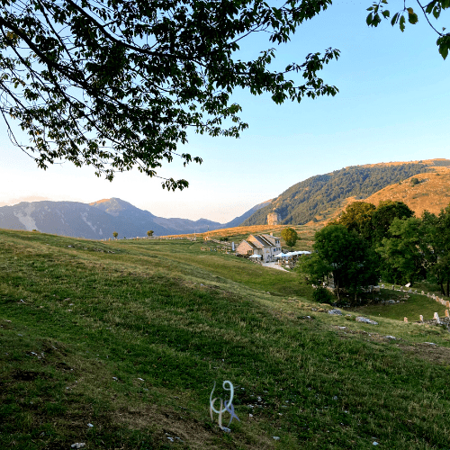 Carichiamo gli zaini in spalla e imbocchiamo la stradina, che ci conduce alla contrada. Proseguiamo tra le case e nel giardino di una vediamo una guardia forestale che chiacchiera con due anziani. Gli chiediamo quanto distante è il rifugio e lui “be’, siete giovani, magari in mezzora ci riuscite”, mentre il signore dietro di lui gli fa eco sorridendo “avete una bella strada in salita da percorrere”.
