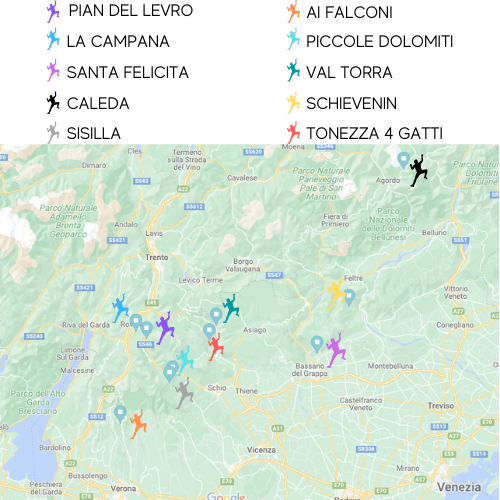 Di falesie ce ne sono davvero tantissime, ma in questo articolo ne cito solo 10 della zona compresa tra Veneto e Trentino. 10 falesie in cui ho arrampicato e dove mi sono divertita. 10 palestre di roccia dove si parte dai gradi facili e si raggiungono anche gli ottavi gradi. Insomma, dove ce n’è per tutti.
