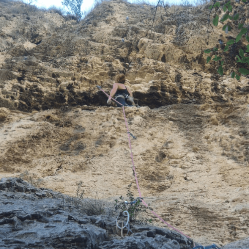 Anche in questa falesia tornerò volentieri, per provare gli altri tiri e godermi lo scorrere dell’Adige mentre mi riposo sulla cengia, seduta a osservare quel che mi circonda prima delle prove finali verso le catene.