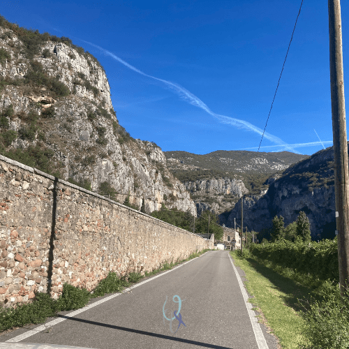 Siamo in riva all’Adige e per arrivare al parcheggio di questa palestra di roccia attraversiamo un enorme canyon.