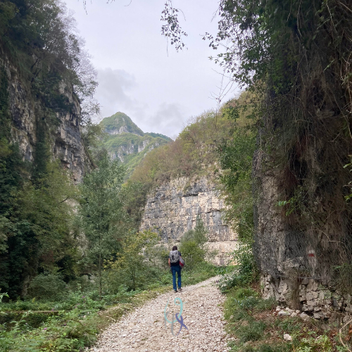 Consigliati da Martina e Nicola arriviamo al parcheggio con loro, Luca e Davide, per poi imboccare il sentiero che conduce alla famosa scalinata di Valstagna con ben 4444 scalini.