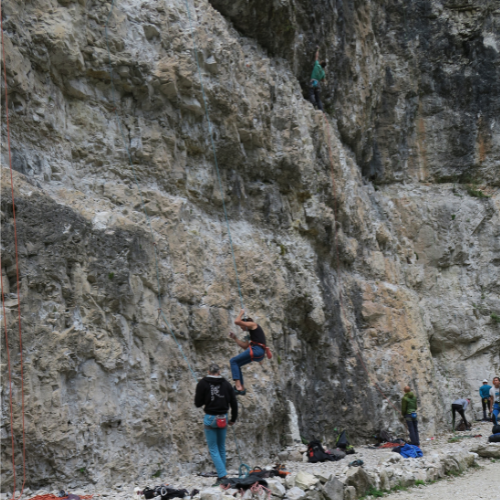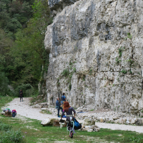 Quando arriviamo davanti a noi si presenta un piccolo gigantesco anfiteatro di roccia: no, non sono impazzita, ho usato questi due aggettivi semplicemente perché la parete non è poi così grande, ma vista da sotto mi rendo conto di essere una creatura minuscola di fronte a una natura che ovunque e comunque è immensa.