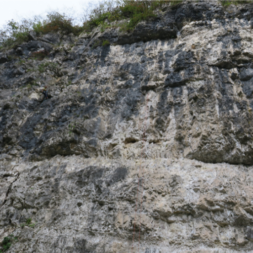 All’estrema sinistra (guardando la parete) notiamo in fase di chiodatura alcuni nuovi tiri non ancora scritti in bacheca che ho sentito vanno dal 6a al 6c+. Noi iniziamo il nostro film con Il monello, un 6a grintoso e molto bello, lungo come tutte le vie di questa falesia, che variano dai 15 ai 35 metri.