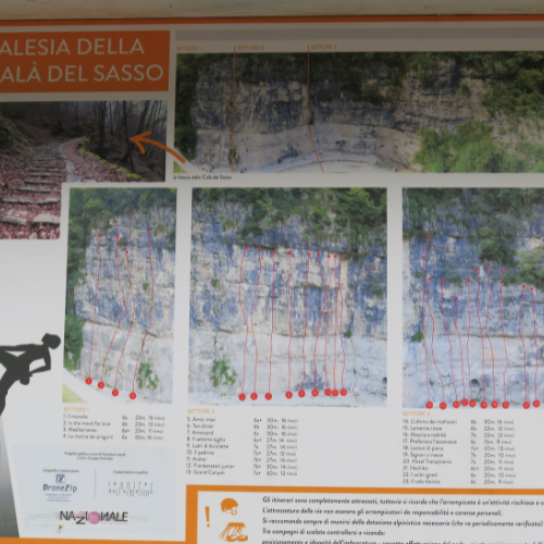 Iniziamo a camminare e in cinque minuti di strada sterrata raggiungiamo la palestra di roccia Calà del Sasso.