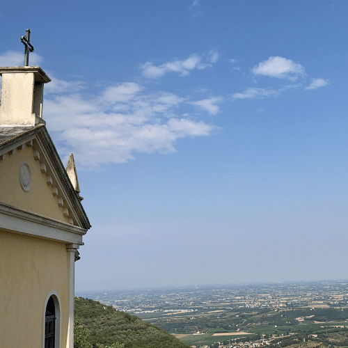 Arrivati al parcheggio e superato un breve sentiero, arriviamo all’Eremo di San Donato, che si affaccia su Villaga e paesi limitrofi.