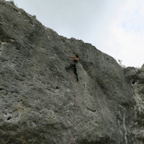 Trovo infatti che questa falesia possa essere un’ottima palestra per chi come me fatica sugli strapiombi: anche se le difficoltà superano di uno o due gradi le proprie, è possibile portare la corda in catena grazie alla vicinanza dei fix e provare più salite per rafforzare i bicipiti e… lo spirito!