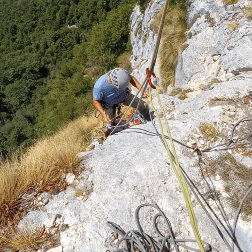 Mi sono ugualmente calato, ma non più di una decina di metri, perché ho iniziato a chiedermi “e se arriva alla sosta che ho appena attrezzato e si mette a rosicchiare le corde?”.