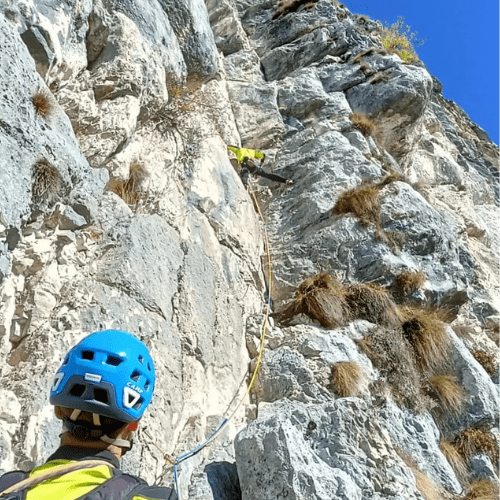 Dopo l’apertura di due tiri, in agosto di quest’anno si sono aggiunti alla chiodatura anche Elena Girardi e Mario Schiro, che sono stati fondamentali nell’aiutarmi a finire la via.