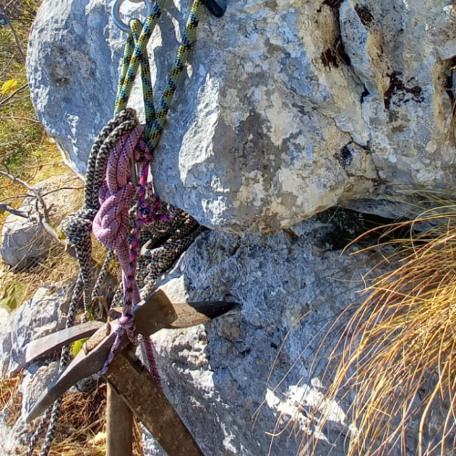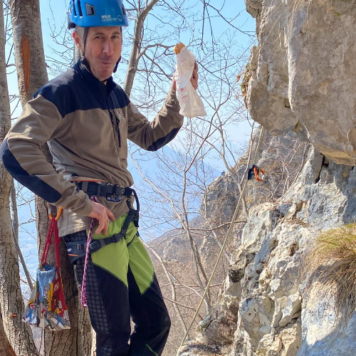 E un giorno Mario mi ha portato anche quattro spit, i primi che ho utilizzato per costruire le soste, e sono diventati per me e la via uno dei simboli.
