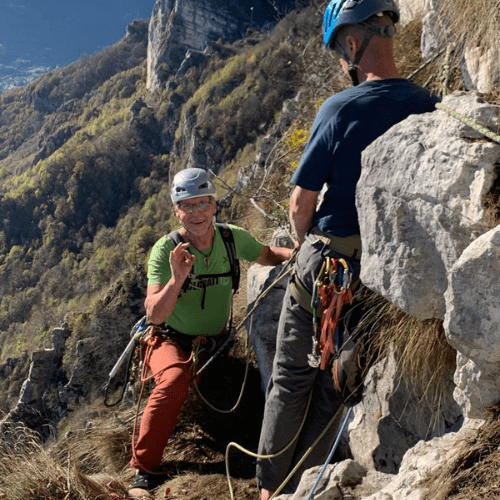 Sì, forse durante le nostre avventure siamo soli con noi stessi, mentre ci troviamo faccia a faccia con la parete o nei lunghi secondi in cui attrezziamo una sosta o fissiamo un chiodo. Ma soddisfazioni, sensazioni ed emozioni alla fine le condividiamo sempre volentieri, con le persone a cui vogliamo bene o che semplicemente possono comprendere cosa significa stare tra la terra e il cielo, e sentirsi bene.