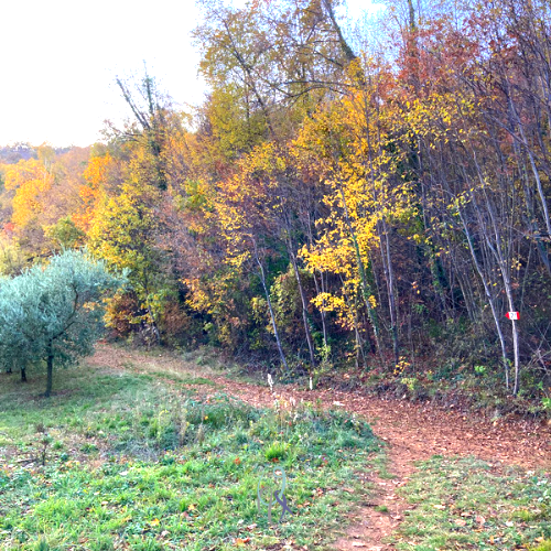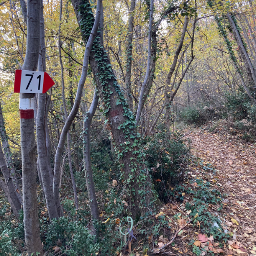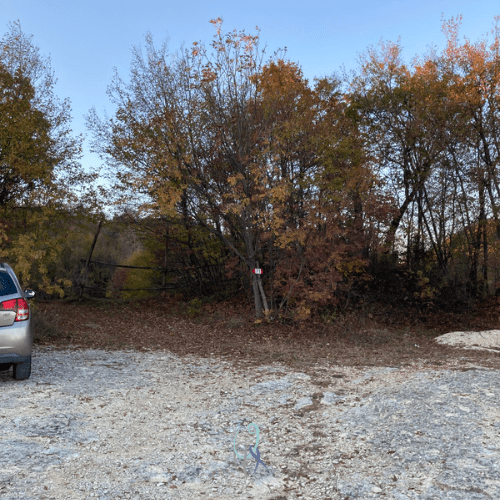 Arrivati al parcheggio, ci incamminiamo lungo il sentiero CAI 71, che ci porta attraverso il bosco fino alle pareti in 10 minuti.