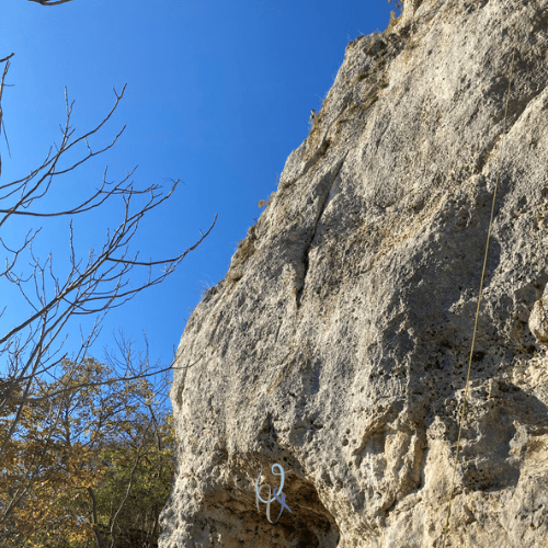 Siamo nella falesia di Barbarano, dove 29 tiri si sviluppano su una parete completamente al sole.