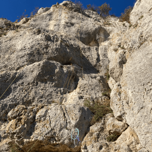 I tiri di massimo 25 metri sono su strapiombo e placca, i gradi vanno dal 5c al 7c e sono una vera e propria sfida con sé stessi, soprattutto per chi non è abituato a questo tipo di conformazione della roccia.