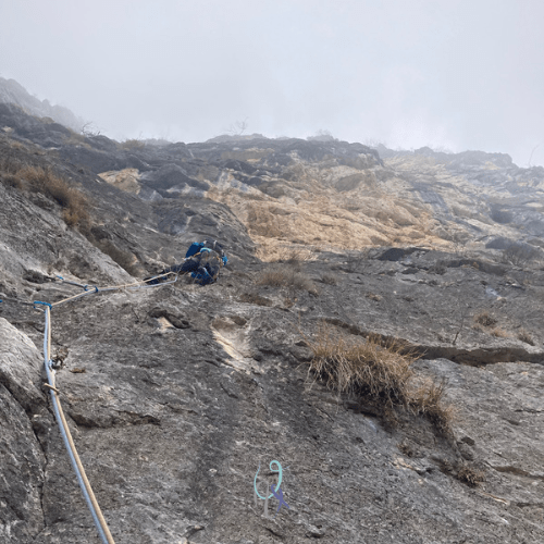 Il predone decise di tornare con un suo storico compagno di cordata ai piedi della parete che aveva scelto di conquistare, arricchito e appesantito dalla solita attrezzatura tra cui una vecchia roncola. Partirono per la salita soddisfatti della loro visione, ma la parete e la sua conformazione rocciosa li fece andare fuori linea. Anzi, fuori rotta…