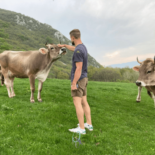 Ad attenderci dove abbiamo parcheggiato, un gruppo di mucche al pascolo si avvicina e ci osserva. Che strane creature… gli uomini. Tanta fretta e poco tempo da perdere, troppi motori e non abbastanza fiato, un poema di parole senza fatti da allegare. Ma non è ancora finita, possiamo ancora migliorare.