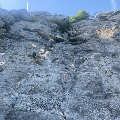 La via è percorribile anche in due orette, i tiri sono cinque e brevi, l’avvicinamento e il ritorno sono di pochi minuti. Ideale anche per chi ha poco tempo e ha voglia di mettersi in gioco, la via Banshee è continua su roccia ottima (qualche accortezza è richiesta nel primo tiro per alcuni punti con roccia un po’ friabile, ma comunque gli appigli ci sono e tengono!).