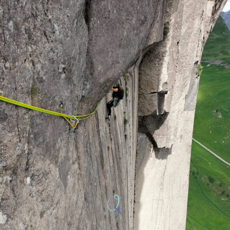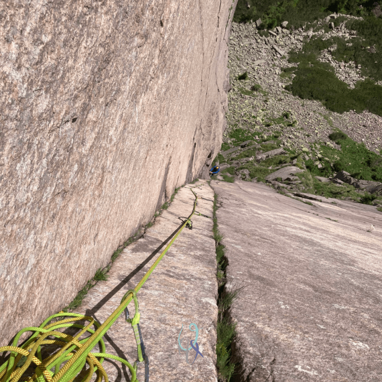 Nel penultimo tiro il traverso è un percorso tra i massi esposti sopra la mia testa e il liscio vuoto sotto i miei piedi. Parecchi metri mi separano da terra eppure la paura dell’altezza nemmeno mi sfiora. Devo salire, non scendere.