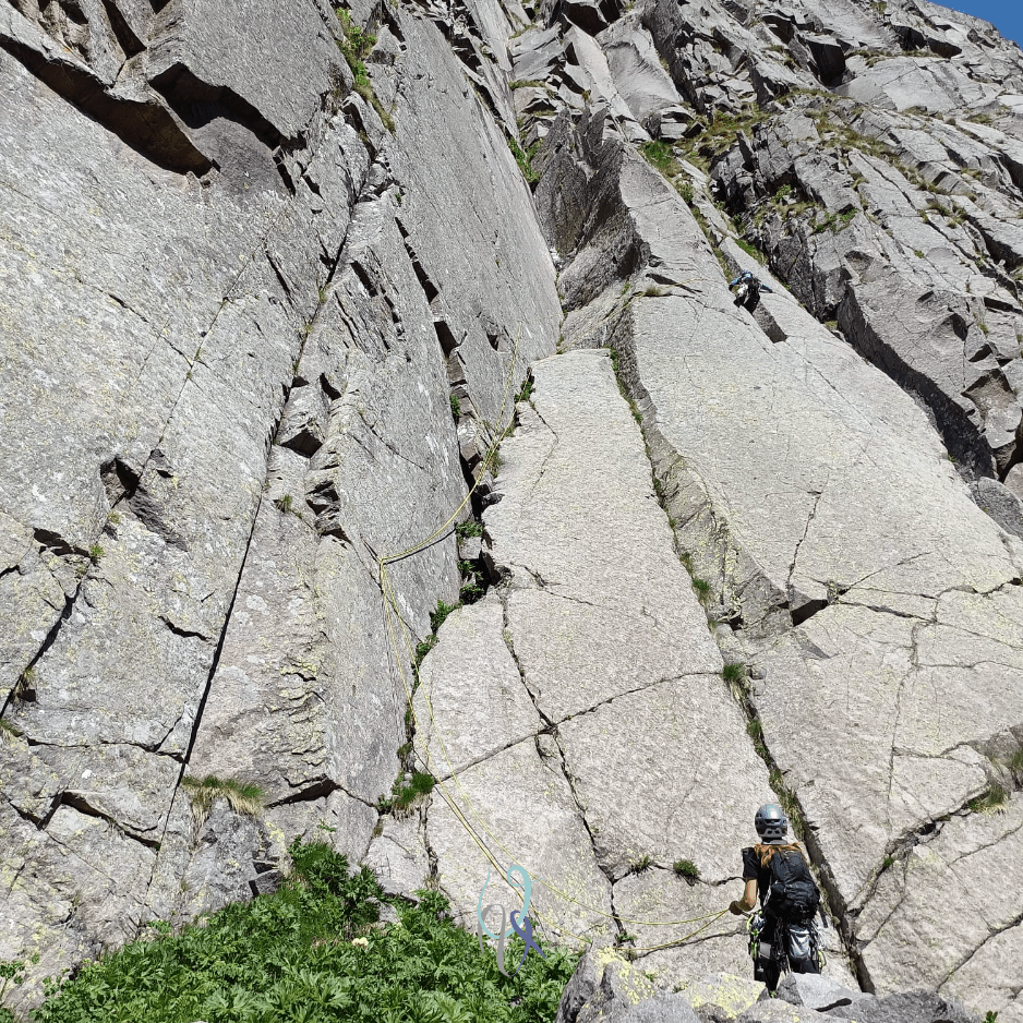 L’ultimo tiro di V+ me lo salgo tranquillamente da seconda, portando con me il dolore alle dita dei piedi e la soddisfazione di aver scalato un gran bel diedro!