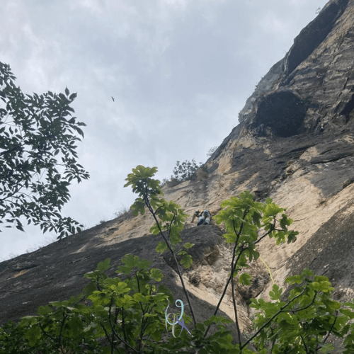 È una via corta, ma che arriva al 6c+ (6b obbligatorio), una salita che ho un po’ sofferto dato il mio grado, ma che in compenso, mescolando la fatica al mio umore della giornata, mi ha fatto pensare che spesso chiediamo alla montagna di liberarci dalle nostre paure e svelare non la verità, che è soggettiva, ma la realtà che abbiamo dentro.