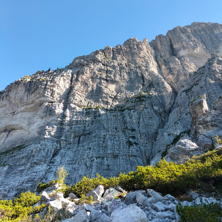 Bando alle ciance. Ci troviamo nel Gruppo della Moiazza, precisamente davanti alla parete della Scalet delle Masenade.