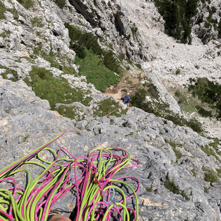 Ci ho provato, ma mi sono calata al secondo spit, decisa di passare dritta quando avrei dovuto spostarmi più a destra, ma soprattutto psicologicamente impreparata. E anche qui si percepisce la mancanza di esperienza, che però pian piano sta crescendo rispetto a qualche tempo fa.