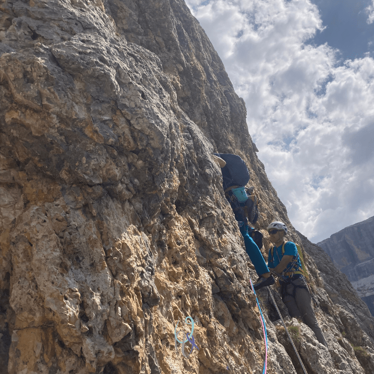 Ma ecco che c’è sempre qualcosa per cui vale la pena non seguire i progetti e buttarsi a capofitto in nuove avventure. E il Piz Ciavazes sopra di noi, con la sua immensa faccia chiara, rugata di rocce gialle e grigie, ci sorride in verticale e ci mostra le tante vie che la attraversano.