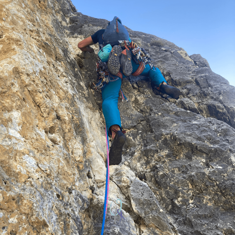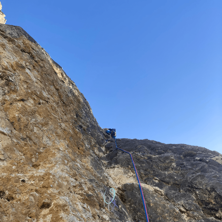 La roccia è magnifica e le prese sembrano intagliate nella parete da uno scultore alle prime armi che scolpisce con decisione lasciando enormi buchi e nette tacche.