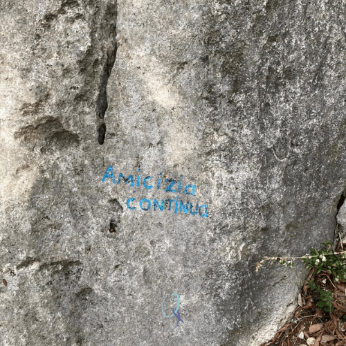 Oggi pausa dalle lunghe vie, che con le loro temute particolarità non smettono di affascinare. Oggi pausa per riprendersi da un limitato periodo di stop, piano piano, con una via breve che nei suoi fugaci tiri mostra nella loro transitorietà un piccolo diedro, fuggevoli placche, momentanei strapiombi, tacche passeggere… il tutto vissuto con ristretti respiri in un tempo rapido. Eppure L’amicizia continua.