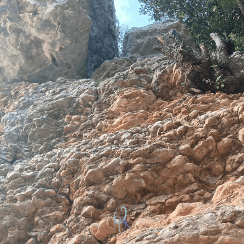 Questo tipo di falesie non rientrano tra le mie preferite, ma la curiosità ci porta a provare i tiri del masso A, dove saliamo un 6a e un 6b avvolti da un delicato silenzio.