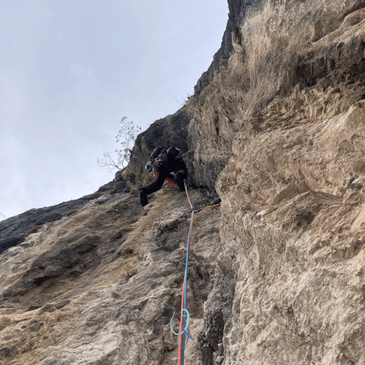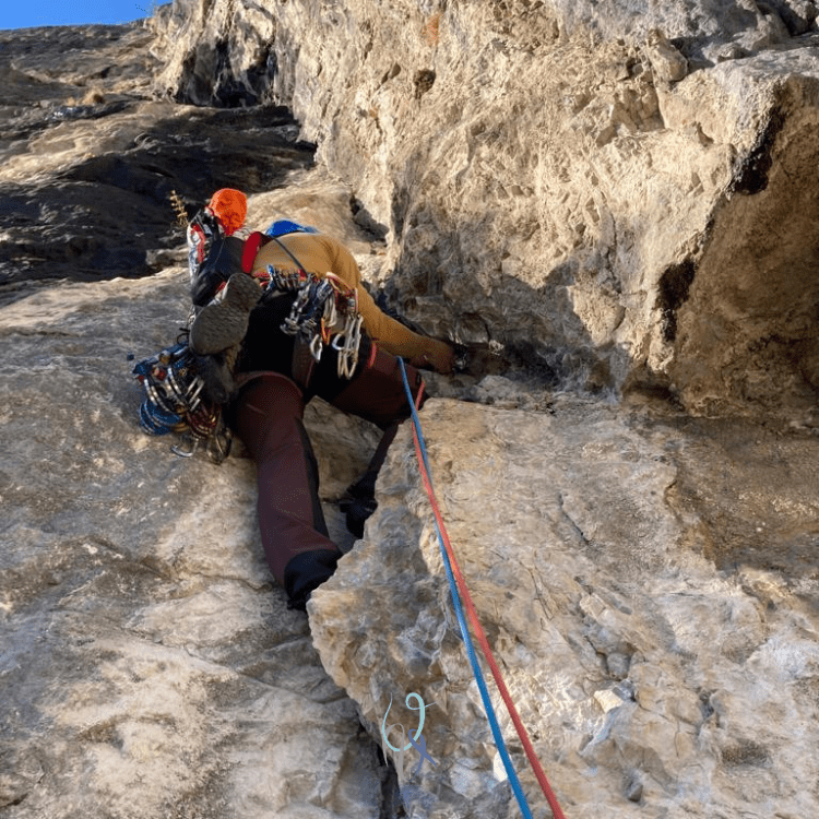 Può fermarmi una frase così?! Ehm, sì: è necessario avere un compagno di cordata di cui fidarsi, avere almeno un po’ di esperienza con le protezioni veloci e testa per provare a tirare qualche tiro.