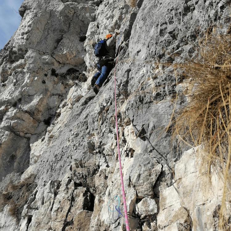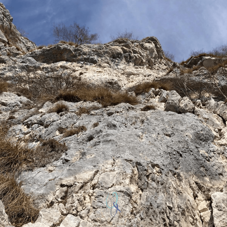 Se prima ho ammesso le mie perplessità, ora devo ricredermi: un tratto di passaggio e due molto più brevi sono su terra ed erba, ma nel complesso l’itinerario è su una roccia per la maggior parte buona, salirla è davvero divertente e l’arrampicata sui passaggi più complessi è tecnica e di forza.