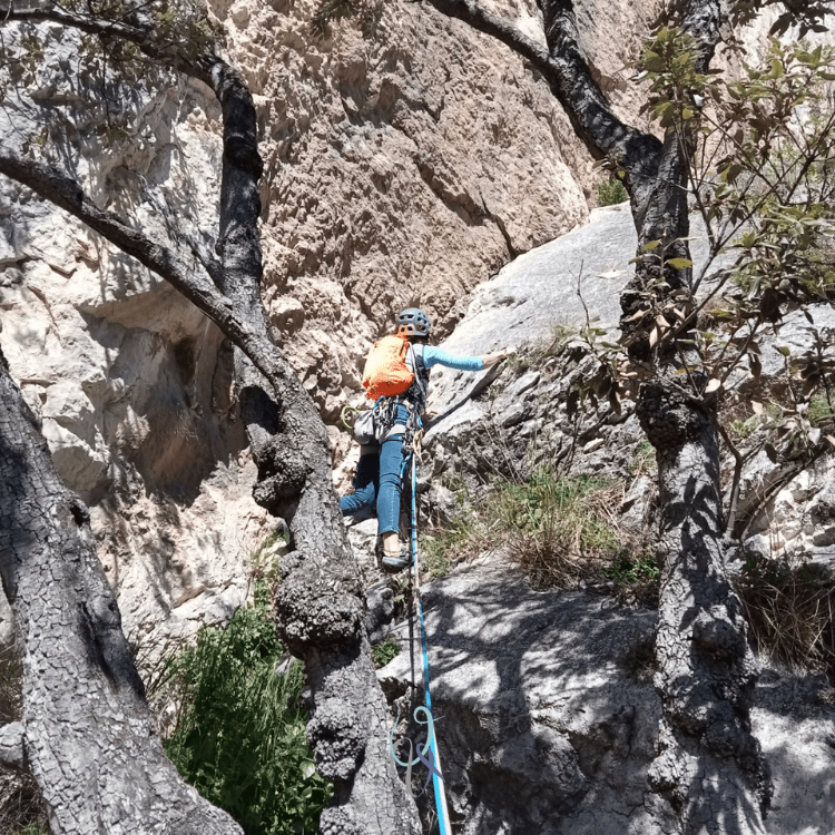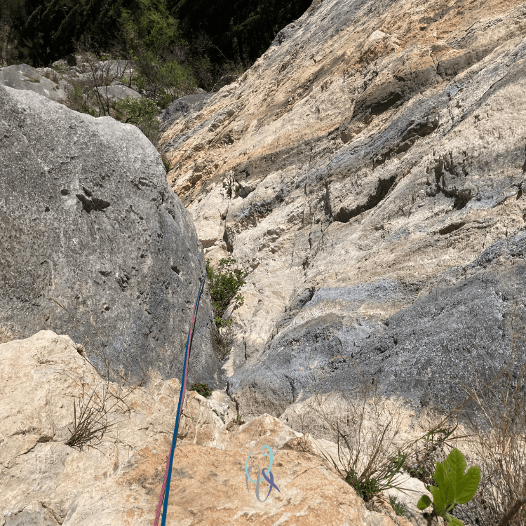 L’ultimo facile tiro prosegue fino all’uscita con una sosta su piante.