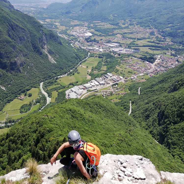 Che vista! Ma soprattutto, che via! Già finita purtroppo, ma la soddisfazione di aver percorso un itinerario che ha quasi 90 anni e una linea così è talmente grande che mi fa sopportare un ritorno lungo e decisamente poco invitante nella parte del canalone in discesa. Ma come ho scritto prima, ne vale la pena.