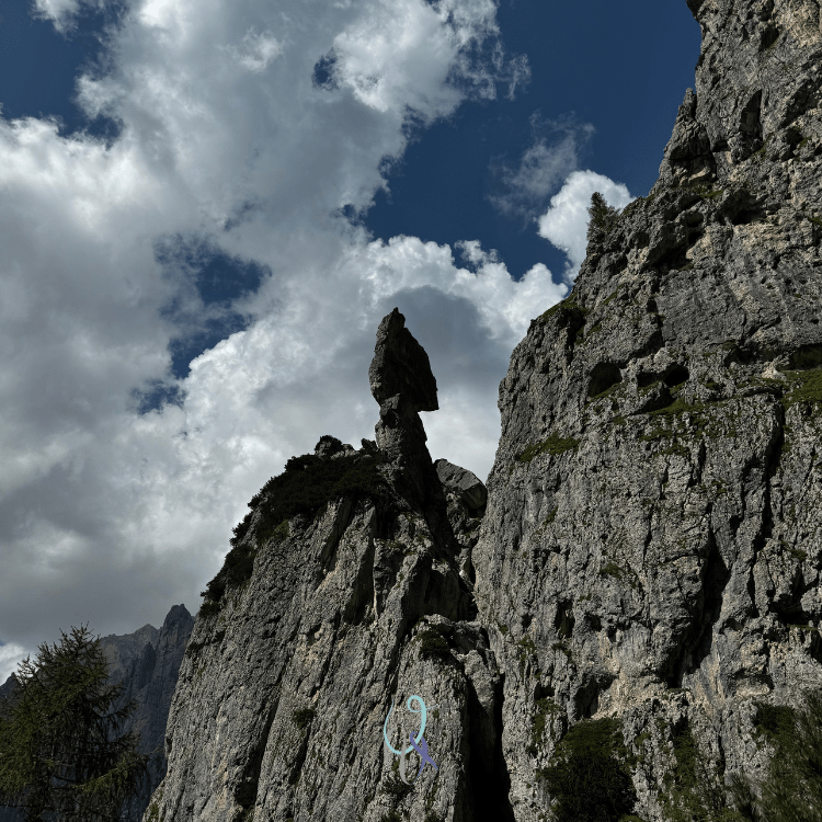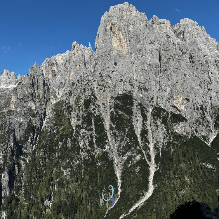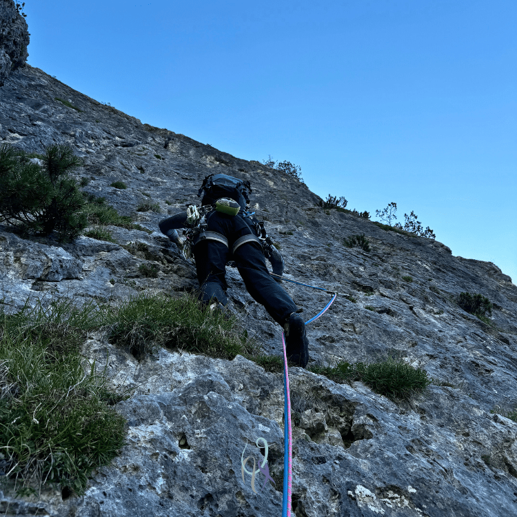 E me ne sono accorta. Una via di Massarotto volevo assolutamente salirla, ma ho scelto una delle più facili con gradi fino al V+ su 6 tiri lungo 235 metri. In questa linea, aperta da Lorenzo Massarotto e Leopoldo Roman il 3 luglio 1983, in origine c’erano solo tre chiodi, oggi forse ce ne sono due in più. Alcune clessidre offrono la possibilità di inserire dei cordini, altri 3 o quattro sono già presenti.