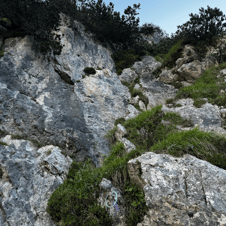 Arrivati al Treviso dopo una quarantina di minuti di camminata, appoggiamo lo zaino, prendiamo fiato e subito ripartiamo lungo il sentiero che conduce alla forcella delle mughe, appena fuori dal bosco svoltiamo a sinistra lungo una traccia che ci porta in pochi metri all’attacco della via Massarotto. Il sentiero dal Treviso è in salita, ma per fortuna è breve e dopo circa una ventina di minuti (forse di più, colpa mia, lo ammetto!) arriviamo all’attacco della fessura Franceschini, in comune con la nostra.