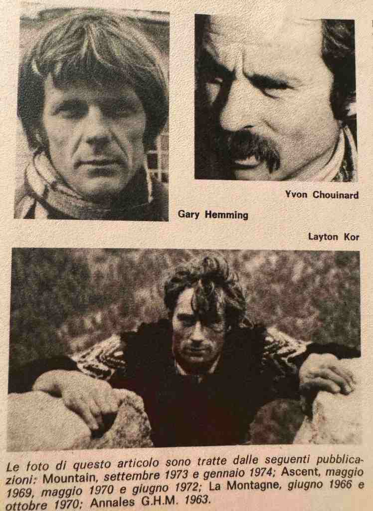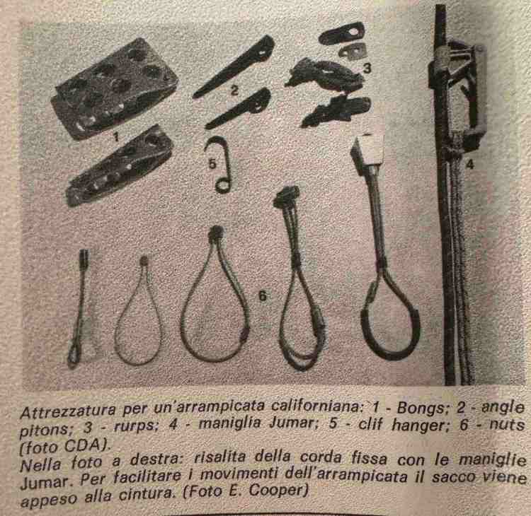 Ma veniamo al dunque e ai mezzi descritti da Motti nel suo articolo sull’alpinsimo californiano.