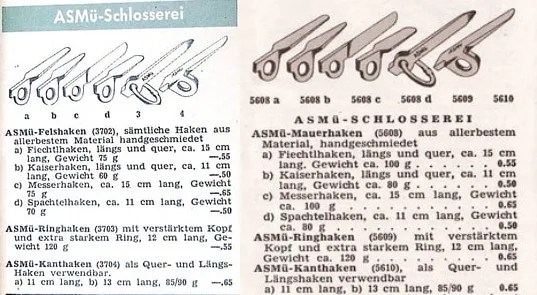 Ma partiamo dall’inizio. Negli anni Cinquanta in Nord America la maggior parte dei chiodi utilizzati per l’arrampicata era prodotta in Europa. Esistono numerosi riferimenti di scalatori che acquistano l’attrezzatura da Sporthaus Schuster a Monaco di Baviera, compresi i chiodi ASMü (prodotti da August Schuster). Alcuni dei chiodi di migliore qualità provenivano dalla Svizzera, anche se negli Stati Uniti erano disponibili solo nei rivenditori specializzati come Abercrombie & Fitch, che vendevano chiodi prodotti da Hupfauf. Anche Fritsch e CCB producevano chiodi di qualità in Svizzera.