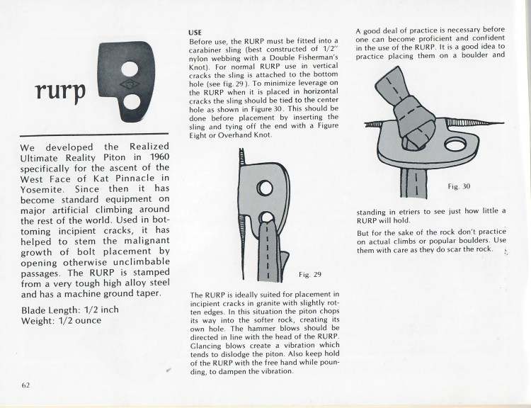 A proposito dei rurp, voglio citare un breve passo della biografia di Royal Robbins.