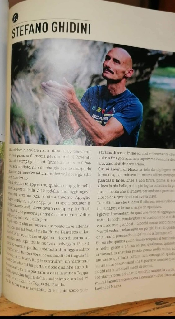 Anche nell’arrampicata sportiva, con riferimento alle palestre di roccia naturali, la parola d’ordine è il rispetto. Ce lo ha detto Stefano e lo hanno fatto molti altri: rispetto per la roccia, per l’ambiente, per la storia e poi per gli stessi chiodatori, che tanto regalano a loro stessi quanto regalano a noi, che ripetiamo i loro tiri e le loro vie.