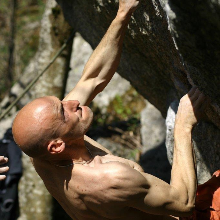 Ero a Fontainebleau e stavo arrampicando con Gabriele Moroni su un blocco. Lui è partito su questa placca leggermente strapiombante e, arrivato in cima, sono partito io. Alla fine ho messo le mani a spalmo vicino ai suoi piedi: ero praticamente fuori, ma ho sbagliato il gioco di piedi sotto e non riuscivo più a vederli. Mi sono detto ‘bon, qua vengo giù’. Alle mie spalle c’era un sasso e mi faceva un po’ paura, quindi ho guardato Gabri e gli ho detto “prendimi le mani e tirami su”. Allora m’ha preso per un polso e ha iniziato a tirare. Salvo.