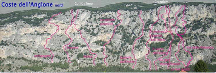 Non mi dilungo sul nome di questa via: conosciamo già la predilezione dell’apritore verso una terminologia così particolare, con origine greca. La via Archai, infatti, è stata aperta da Heinz Gril, Franz Heiß, Sigrid Königseder il 22 ottobre 2006 e ci troviamo sulle Coste dell’Anglone, parete nord.