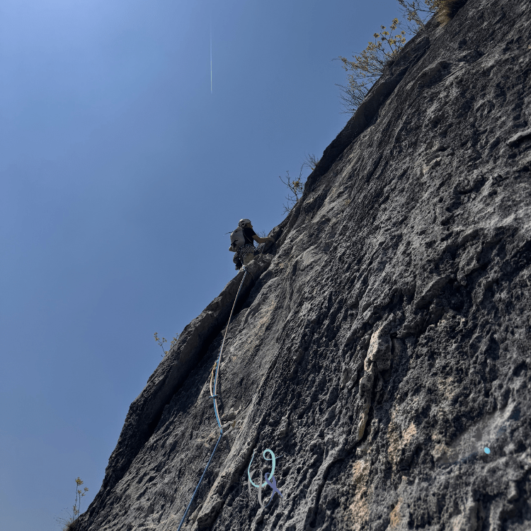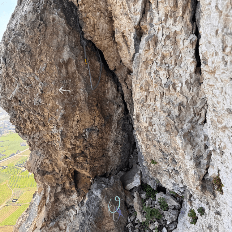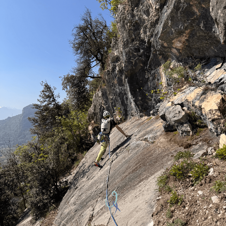L’arrampicata è spesso in dülfer date le numerose lame presenti, alternata da passaggi che richiedono più forza di quanta probabilmente te ne è rimasta.