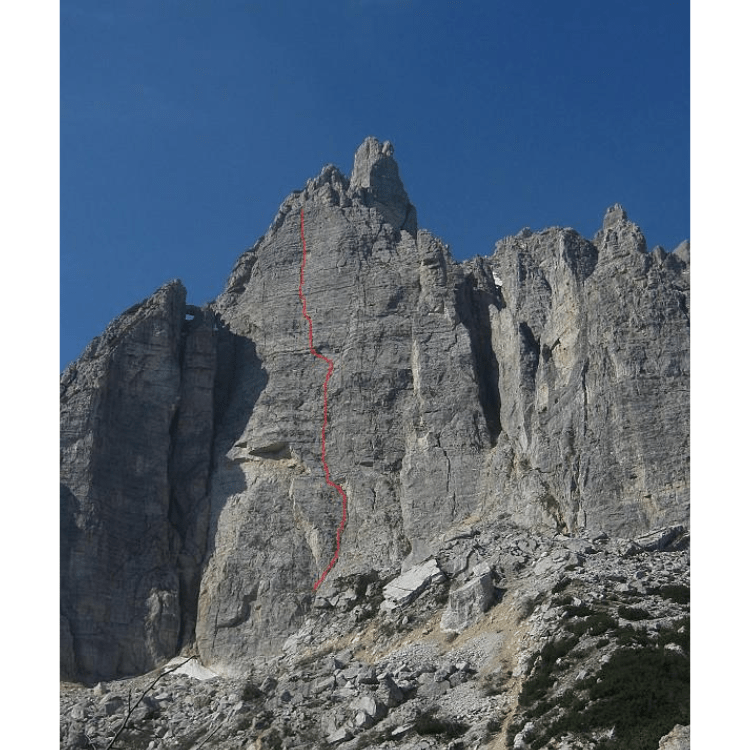 * Via Miotto-Saviane. “Miotto con Benito Saviane supera il pilastro sud-sud-ovest (tra il Gran Diedro di Destra e la via Bee), la cosiddetta Direttissima (V, VI, A2 e A3, 1450 m). Il 24 agosto 1980 vincono la parte inferiore e il 13-14 settembre la parte superiore.” [Fonte: Gognablog]