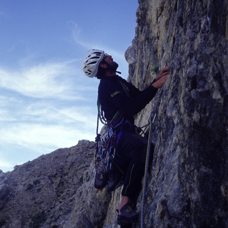 AM: Sì, noi abbiamo imparato ad arrampicare con i nostri vecchi, con i chiodi, e anche piantati distanti l’uno dall’altro. La nostra testa si è formata così. Di quelli che invece hanno iniziato ad arrampicare con gli spit, pochi hanno testa per fare alpinismo. Noi fin da giovani ci siamo abituati alla falesia pensata per allenarci e alzare il grado in montagna.