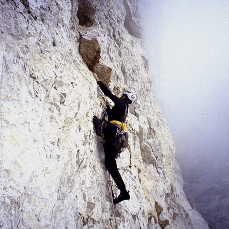 Posso dirti di una volta che ho preso un brutto temporale tornando dalla via della Falce in Dolomiti: oltre alla pioggia, dalla parete scendevano un sacco di detriti. Ci siamo inevitabilmente fermati e mi ricordo che continuavo ad alzare i piedi perché sotto cresceva pian piano il suolo con grandine e sassi. Avevamo un solo zainetto, che ci serviva per ripararci un minimo dalle scariche, e non potevamo scendere perché le corde seguivano la linea della cascata d’acqua. Lì ho avuto paura, perché il temporale fortissimo e la grandine mi facevano sentire impotente: in quei momenti non ti resta che attendere il fluire degli eventi. Ci vuole anche fortuna in montagna.